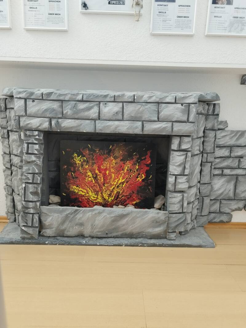 Gestaltung einer Theater Aufführung mit Malereien auf Holzplatten mit Zuschnitt und Lasierung